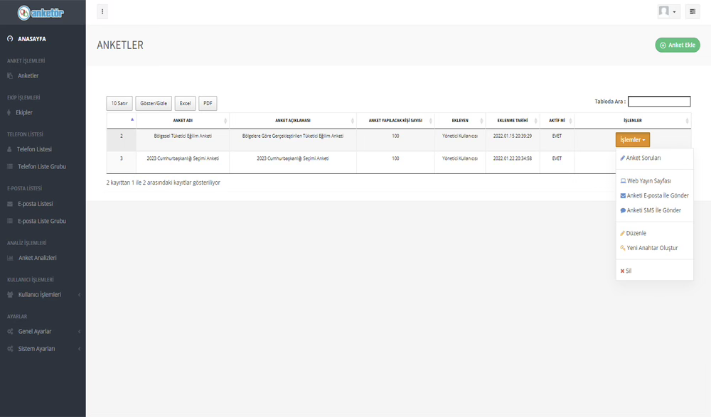 Anketlerinizi tek bir ekrandan görüntüleyin ve yönetin.