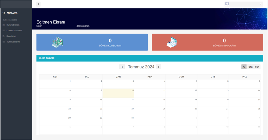 Eğitmen ekranı ile eğitmenleriniz kurs takvimini, kursları görüntüleyebilir, sınavları ve notları girebilirler.