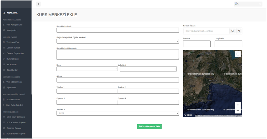 Yeni kurs merkezleri ekleyebilir, bağlı oldukları halk eğitim merkezlerine göre atamalarını gerçekleştirebilirsiniz.