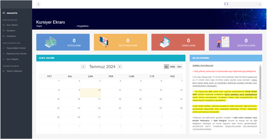 Kursiyer ekranı ile online kayıt ve başvuru alın, kursiyerleriniz kurs takvimini, sınavlarını, notlarını ve devamsızlıklarını görüntülesin.