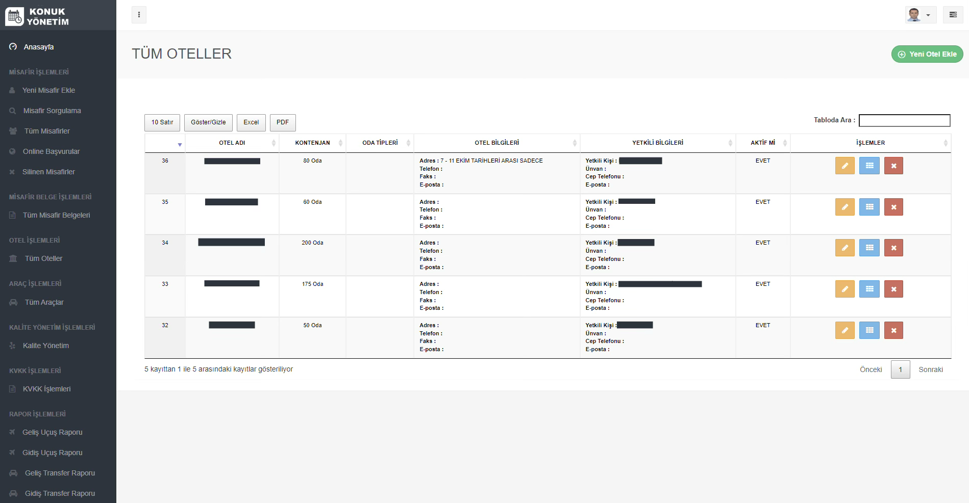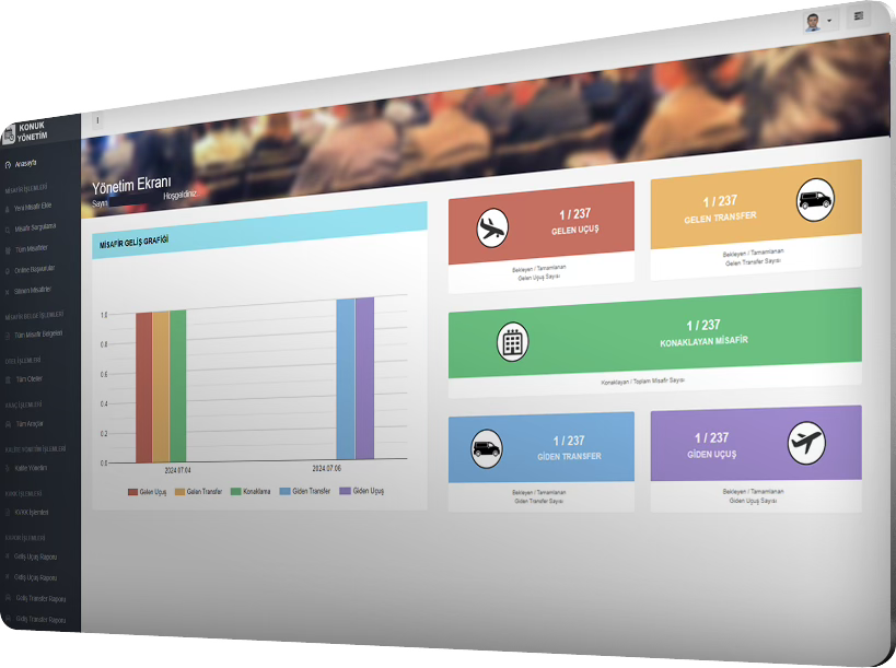 Belediyelerin gerçekleştirdiği konaklamalı etkinliklerde ya da festivallerde gelen konukların geliş-gidiş uçuş bilgiler, geliş-gidiş transfer bilgileri, konaklama süresi bilgileri, otel, oda bilgileri gibi bilgilerin yönetilmesini sağlayan yazılımdır.
