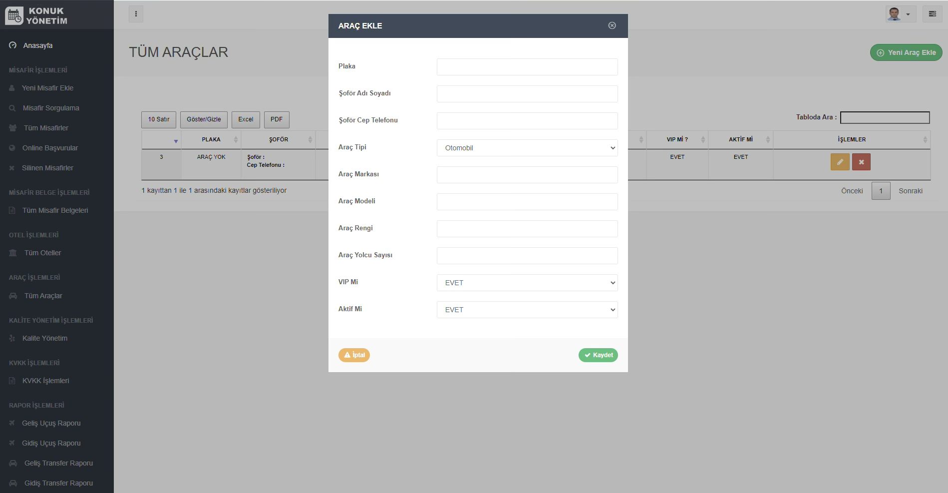 Transfer araçları ekleyin, misafirlerinizin transfer araçlarını kolay bir şekilde organize edin.
