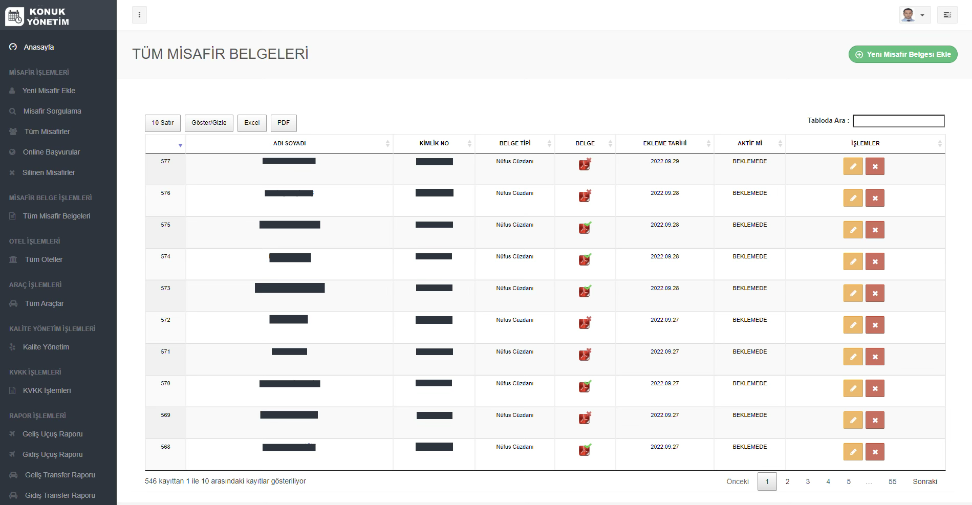 Yoğun tempolarda misafir belgeleri asla karışmaz, asla eksik kalmaz, daima kontrolünüz altında.
