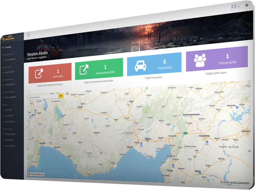 Araç takip cihazı gibi her hangi bir cihaza ihtiyaç duyulmaksızın doğal afetlerde vatandaşlardan gelen taleplerin sıraya konulması, hangi araç nerede, hangi araç müsait, hangi araç ne zamandır hangi işle uğraşıyor bunların bilinmesini sağlamak amacıyla geliştirilmiş bir yazılımdır.