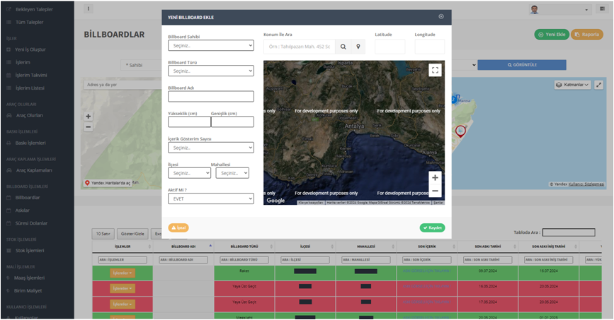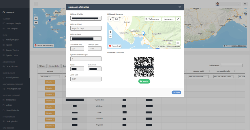 AnasayfaYazılımlarSektörel YazılımlarBillboard Askı Yönetim Yazılımı